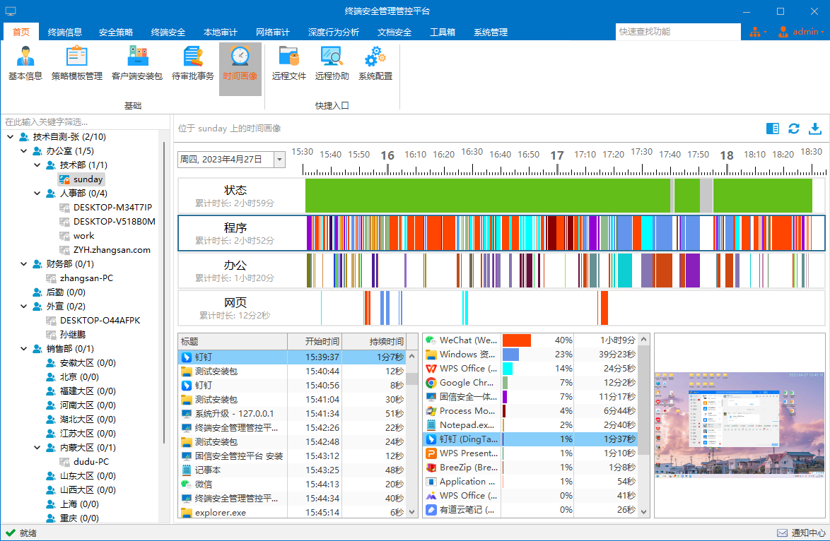 終端計(jì)算機(jī)作為存儲(chǔ)設(shè)備,記錄了大量重要涉密數(shù)據(jù),同時(shí)作為相對(duì)開放的網(wǎng)絡(luò)接入設(shè)備,其安全性直接關(guān)系整個(gè)內(nèi)部網(wǎng)絡(luò)的整體安全。隨著信息安全技術(shù)的不斷發(fā)展,終端計(jì)算機(jī)安全管理轉(zhuǎn)向精細(xì)化、便捷化、不能再進(jìn)行以設(shè)備為單元的粗粒度管理模式,終端管理者更加關(guān)注設(shè)備使用者操作行為及操作便捷性。