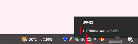 1、右鍵右下角網(wǎng)絡(luò)連接,選擇【打開網(wǎng)絡(luò)和internet設(shè)置】