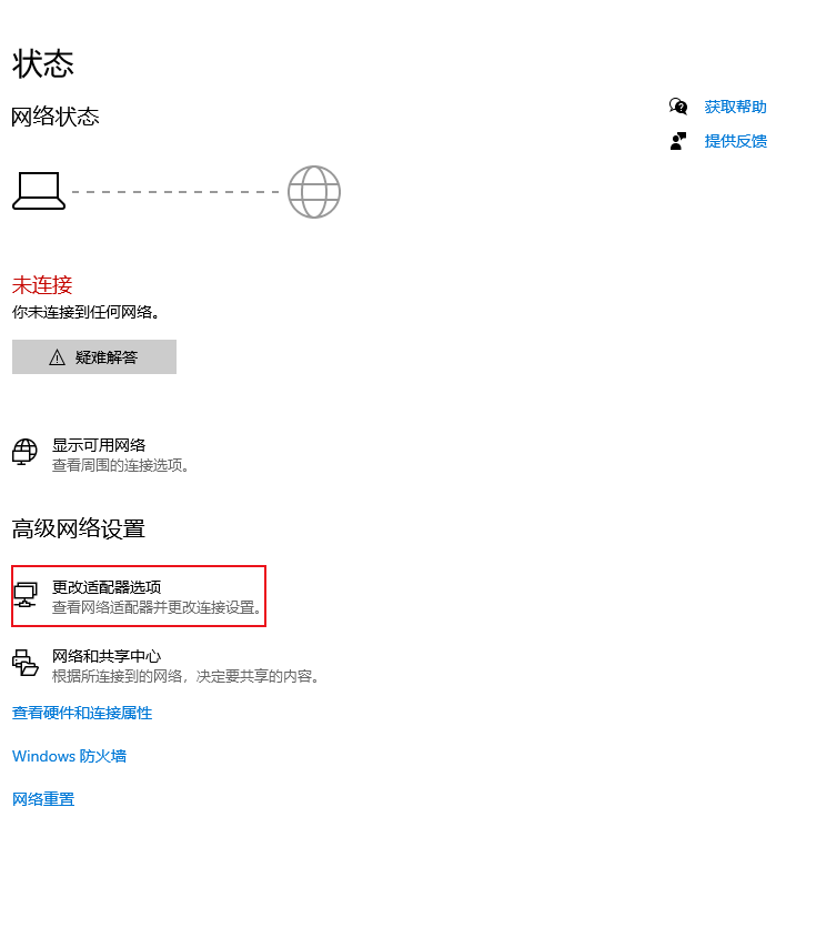 2.然后找到中間的【更改適配器選項(xiàng)】。