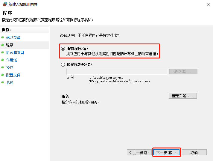 4.在“程序”中,選擇“所有程序”并點擊“下一步”